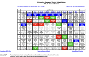 ** Calculated from data available here, in which I divided by 29 (months) the figure, 81,532, for “Death from All Causes” of persons 0-17 from January 2020 through May 2022 to arrive at an annual number of deaths today in America of persons 0-17 of 33,732. (81,532/29 = 2,811 x 12 = 33,732.) According to the Census Bureau, the percentage of Americans under the age of 18 is 22.3 – meaning the number of such persons in the U.S. today is about 74,310,290. 33,732 is 0.045 percent of 74,310,290.