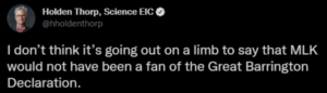 Is the editor-in-chief of @ScienceMagazine (@hholdenthorp) conducting séances to divine MLK’s thoughts on the @gbdeclaration?