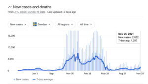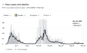 Too few will pay attention to this reality, but with a new wave of Covid hysteria about to slam into humanity – bringing with it demands for the continuation of existing, the reimposition of past, and the creation of new Covid prohibitions and mandates, it’s useful to look at these screenshots, taken on the morning of November 26th, 2021, of data from Sweden: