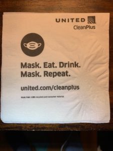 On a flight home yesterday (Tuesday), on United Airlines, from southern California to northern Virginia I was given this napkin. It depressed me deeply because it describes, in an approving – indeed, encouraging – tone, a future that I fear is likely, yet one that I dread.