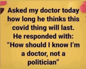 Those little bromides – this casual dismissing of all concerns that might have doubts about a medically informed totalitarian state – are strewn throughout. I personally cannot fathom the psyche of a person who imagines that his profession entitles him to control all human interactions by police force, with gendarmes prohibiting people from behaving completely normally, and using violence against them for daring to engage with each other, opening their schools and businesses, and otherwise going about their lives peacefully – and genuinely believing that this is the best thing for society all told.