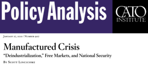 * Scott Lincicome, “Manufactured Crisis,” Cato Institute Policy Analysis, January 27, 2021, page 19.