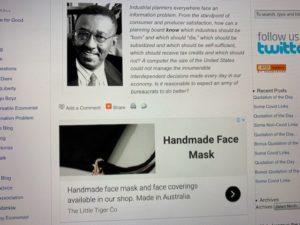 This ad that appeared when David opened Cafe Hayek’s page suggests that this popular belief is, perhaps, inaccurate.