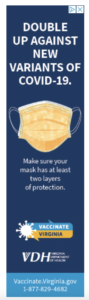 Finally, just a few minutes ago the ad pictured here appeared on my Cafe Hayek home page. (Clicking on it leads to this site.) Despite nearly four months of steadily, and often dramatically, falling case counts in Virginia – despite steadily falling hospitalization numbers for Covid – despite falling Covid death rates – despite 50 percent of Virginians now having at least one vaccine shot and 38 percent being fully vaccinated, the government of this State which was home to Patrick Henry, George Washington, Thomas Jefferson, and James Madison officially advises citizens to double mask and to worry about “new variants of Covid-19.”