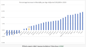 “The crew at the Oxford Centre for Evidence-Based Medicine (CEBM) have done an analysis of excess mortality for 2020 across 32 countries to get a clearer picture of the impact of the pandemic and lockdowns. They used excess mortality instead of “Covid deaths”, they explain, to avoid problems with recording and classification of deaths and include any impact of anti-Covid measures. They used age-adjusted mortality to take into account differences in the average age of populations. They compared 2020’s figures to the average of the previous five years to give a percentage increase or excess during the pandemic year (they have made the tool they used to analyse the data publicly available).” – More here.