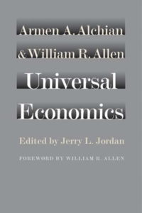 … is from page 4 of the late, great UCLA economists Armen A. Alchian’s and William R. Allen’s Universal Economics (2018; Jerry L. Jordan, ed.); this volume is an updated version of Alchian’s and Allen’s magnificent and pioneering earlier textbook, University Economics: