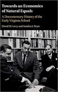 … is the frontispiece of David Levy’s and Sandra Peart’s new (2020) volume from Cambridge University Press, Towards an Economics of Natural Equals: A Documentary History of the Early Virginia School; specifically, it’s from a letter that the late Nobel-laureate, and at the time Professor of Economics at the University of Virginia, James Buchanan wrote on October 17th, 1960, to Kermit Gordon, then a program officer at the Ford Foundation:
