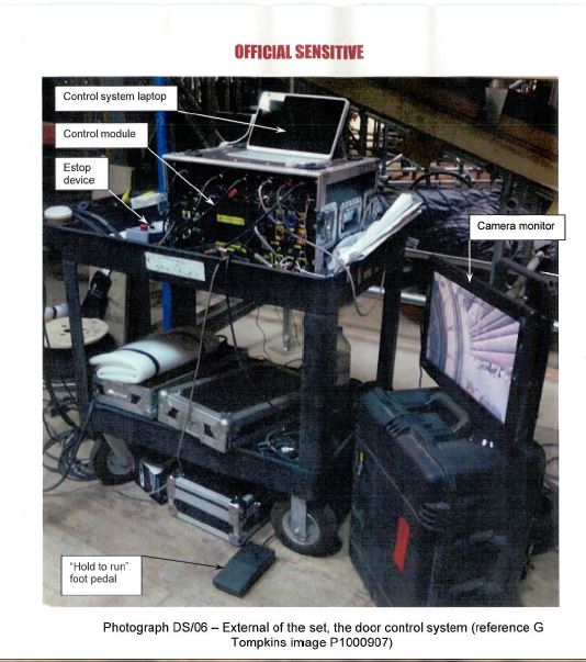 A. An HSE investigator's report established that, even in ideal circumstances (an experimental setup to test reaction time, where someone knows exactly what's going to happen and what to do), nobody with an e-stop button could have reacted quickly enough to keep a mistakenly-activated, powerful, fast-moving Falcon door from hitting an actor in the head. As it was, the operators reacted pretty quickly under the shocking circumstances.