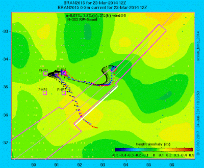 The area of interest, 35.6 South Latitude, 92.8 East Longitude, is on the left side, where the black dots pile up. The latest studies identify a few additional places to look, but this one takes first priority.