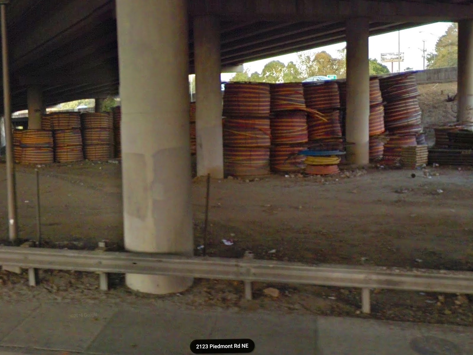 In addition to the helpful locational data from Wiki, Google's street view might shed some light on early reports that "PVC pipe" caught fire under I-85 in Atlanta. While the images I located are no more recent than 2016, if the same material was stored there yesterday, it looks more like reels of HDPE utility pipe, perhaps for gas line replacement.