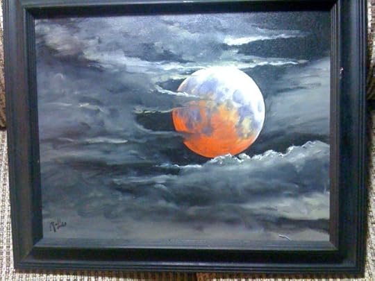 The last full lunar eclipse, the local astronomy club had a party set up at the nearby community college. I had big binoculars on a tripod, and they actually gave a more impressive view than a telescope, with an illusion of depth, especially when part of the moon was still in bright sunlight. Our friend Tim Malles did a painting of it, which I bought; one of the few paintings in our house that I didn't do.