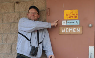 Stories about birders in the bathroom are legendary, The great Macklin Smith (largest lifelist) has a story with rare bird on Attu coming out of the outhouse. The is the story in the Big Year movie about seeing a rufous capped warbler on a toilet brush in El Paso, etc. Well, with that in mind, we decided to see how many rare birds we could see from outhouses. If I could get the outhouse in the photo, I got extra credit.