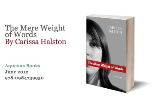 Most people who read Carissa’s blog or see her Facebook and Twitter updates already know that she has a new book, The Mere Weight of Words, coming out at the end of the month. If you’d like to get a sneak peek at the book, you can read an excerpt that was published today at The Collagist. After reading it and getting excited about the book, you can join Carissa at one of her upcoming readings. The dates and locations are listed under “Tour” just a little above and to the left of these words. Unless, of course, you’re reading this on tumblr, in which case there’s probably a picture of a cat above and to the left of these words. Sorry. There’s only so much I can control.