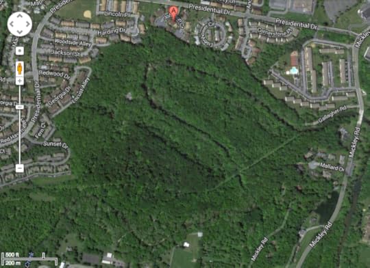I grew up next to a forest. If you look at my childhood corner of Whitehall on satellite view, you’ll see what I mean. The A is the house I grew up in. The green space is, as you surely guessed, the trees.