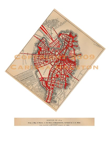 And I’m focusing on an image that I made a few years ago that visually epitomizes what Boston means to me. It’s based on a map from the late 1800s. I digitally altered the streets to paint some of them red: