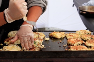I was careful to use gloves whenever I handled cheese, and I even experimented a bit with using tongs to handle the tortillas. Coincidentally, the health inspector showed up. She told me right away that a customer had approached her on the way to the booth, and complained that I was handling tortillas after handling money. Apparently the same customer who had complained last week had been lurking and observing.
