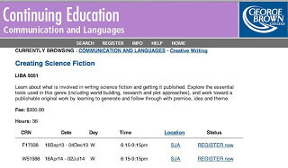 If you or anyone you know in the Toronto area with or without a WIP is looking to learn the essential tools of writing science fiction, then this is an ideal course for you. Sign up and tell your friends.