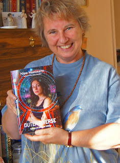 I shared an interesting panel on Politics in SF (From Avatar to Zardoz) with comedic author Ira Nayman, writer and critic Kathryn Cramer, and Mark Shainblum, SF/F and comic book writer. I didn't see Toulouse in the audience; I think he lured Vanessa downstairs to the lobby for more espresso—the lush! I followed with a panel called "Characters or Real People" with the effervescent Violette Malan, author of The Shadowlands, and Nanowrimo wiz Rebecca Blain. We were the real characters. Both Vanessa and Toulouse managed to show up for the launch of my space adventure-thriller Outer Diverse, espresso cups in hand.