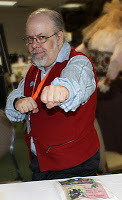 Eric Flint, author of the 1632 Alternate History Series, was the Guest of Honor. Eric comes by his alternate history works naturally: he graduated Phi Beta Kappa form the University of California in LA, majoring in history. Despite his academic credentials, Eric took on a varied working life including longshoreman, truck driver, steel worker, meatpacker, glassblower and machinist. I'm sure all those positions provided fertile ground for storytelling.