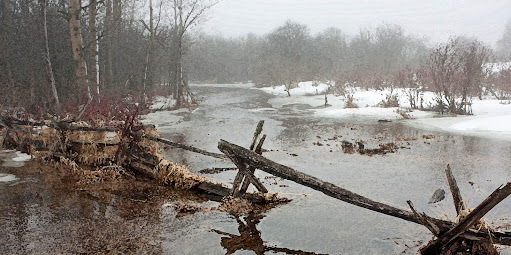 The low sun seemed to light the stand of birches from within, flickering through the trunks like a strobe light as Jejeune rowedpast.