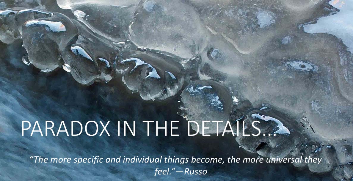 I concluded the presentation with a discussion on the “paradox of details”: the more specific description is, the more universal its appeal. This is because the details can establish relevance and realism to the scene and the POV character experiencing them. Vagueness and lack of tangibility are avoided through specificity. The key, however, is to use details that harmonize with the theme and tone of the book: as metaphor. Details as metaphor is what you want to achieve.