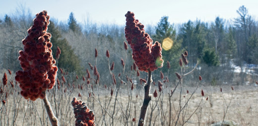 I made my way down into the rock-strewn meadow and was immediately struck by the silence. As though a hush had settled there, a kind of sacred humility stayed me. I felt unexpectedly blessed. I walked with silent steps as if in a church, toward a grove of stunted sumacs and came suddenly face to face with two white-tailed deer. We were both startled. In that protracted moment when our gazes met, time paused and the world stopped. Then one deer sprang away, followed by the other, their shocking white behinds bobbing as they fled through the sumacs toward the forest.