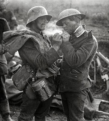As Christmas neared, the soldiers on both sides of the trenches “sensed the stupidity of killing someone that was just like them and who had never done them any harm,” writes Gary G. Kohls of Global Research. “Many of the men that experienced the moment knew that something deeply profound had happened: a spiritual experience of mutual respect and love that epitomized their mutual Christian upbringing – and they refused to fight and kill when the war was ordered to re-start.” They disobeyed their orders that forbade them to lay down their weapons and fraternize with the enemy: an enemy—the soldier in the trench across from them—who in some ways more shared their lot than their own officers and politicians.On Christmas Eve 1914, German troops ceased fire in the region of Ypres, Belgium and Saint-Yvon. They decorated the area around their trenches, just 30 to 300 yards from the British, French, or Belgian trenches. The Germans decorated Christmas trees and sang Christmas carols. The British responded with carols of their own. The two sides then shouted Christmas greetings to each other. Eventually, soldiers ventured out of their trenches into No Man's Land; they shook hands with their “enemy”, shared smokes, food and wine and sang with each other. Souvenirs such as buttons and hats were exchanged. The artillery in the region fell silent. Joint services were held. In many places along the front, the truce lasted through Christmas night, continuing until New Year’s Day.