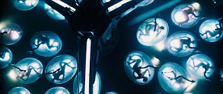 It’s a simple and banal existence. We glimpse a scene of adults reading Dick and Jane out loud. When in the opening scene Lincoln Six Echo finds a shoe missing in his provided wardrobe, this becomes a major focus of his day (when greeted by a colleague with, “How are you doing?” he responds with, “I’m missing a shoe.”)Lincoln can’t accept this mundane existence. In an interview with Dr. Merrick (Sean Bean), the scientist who runs the compound, Lincoln naively unleashes a tirade of items that frustrate him, like why everyone wears white, who determined tofu Tuesday, and then ends with: “I want to know answers and I wish there was more than just waiting to go to the island.” He also suffers from dreams about a life he doesn’t understand—they are, in fact, memories of his ‘sponsor’, the original man (Tom Lincoln) that he is a copy of. When he discovers a moth and follows it, he stumbles into the hidden part of the compound. There he witnesses what really happens to “lottery winners”: they are killed and used for organ harvesting, surrogate motherhood, etc. for each one’s sponsor.
