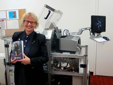 “Over here,” you say, steering your mom toward the EBM, already humming like an old tomcat getting its chin scratched. Your mom bends down to watch the pages spew out of the paper holder and stack neatly in a tray, then get snatched by robotic fingers as a colour cover is created then laid below, ready to envelope the book interior. After the gluing and binding, the robots trim the book on three sides then summarily send it sliding out a chute on the side.