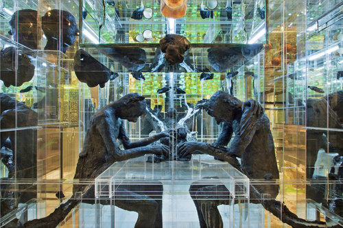 "But here, he has created a rich, intricately networked ecosystem in which frantic busywork staves off entropy and decline. In that, he may have even stumbled on an allegory for the art world." from The New York Times brief on his exhibit.