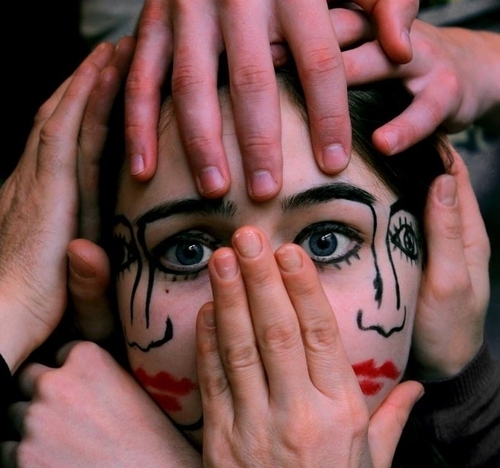 By simply drawing on each side of his model’s head with common makeup products like eyeliner and lipstick, Bieniek transforms the young woman into a eerie set of twins. More after the jump: