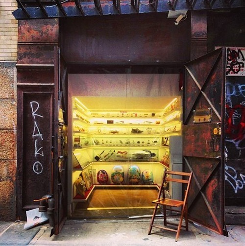 Check out this quirky little display of objects in an elevator shaft in Tribeca. Museum, as it’s called, was founded by Josh Safdie, Ben Safdie, and Alex Kalman.