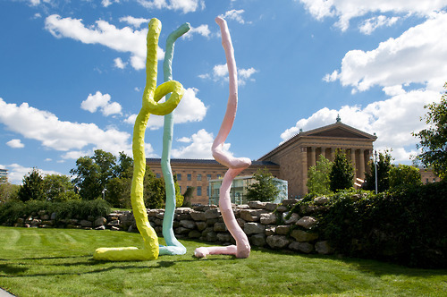Like the sound you’d make with the letter P, like please or perfect or purple. “Lips,” 2012, by Franz West
