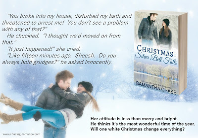 As you can guess, Christmas is my FAVORITE time of year and getting to write Christmas-themed romances are probably the best kind to write. So "Christmas in Silver Bell Falls" is the story of Melanie - a woman who HATES Christmas. She has many good reasons to. She inherits a house in the town of Silver Bell Falls - a place that screams Christmas 365 days a year. In order to claim the inheritance, she needs to stay in the house for three months. Unfortunately, this happens at the beginning of the holiday season so that locks her in for Thanksgiving, Christmas and New Year's.