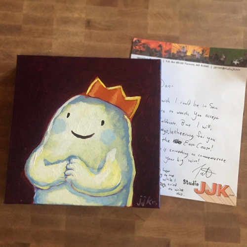 Humbled and flattered to receive this wonderful #BEEKLE painting from Jarrett Krosoczka. Thanks, buddy! @studiojjk