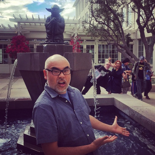 Took a nice photo of myself in front of the Yoda fountain at #Lucasfilm when WHA?! @diterlizzi @angeladiterlizzi (Angry old man fist shake)
