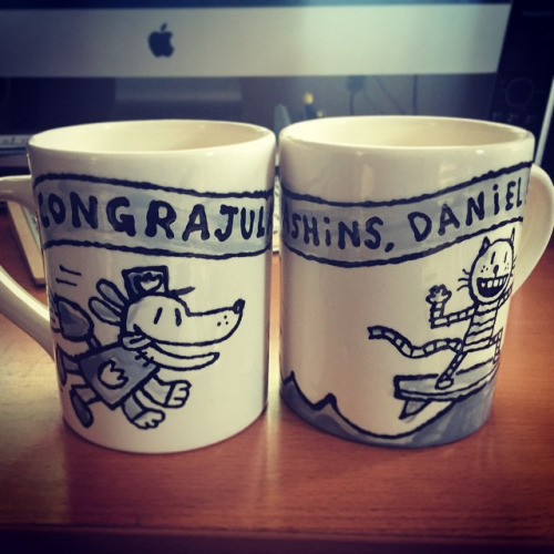 One of a kind hand painted mugs as a gift from Dav Pilkey. I will never drink out of these. #thanks