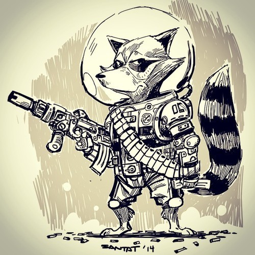 Can’t remember the last time I drew w/o a deadline. My version of #RocketRaccoon from #GuardiansoftheGalaxy #cantsleep