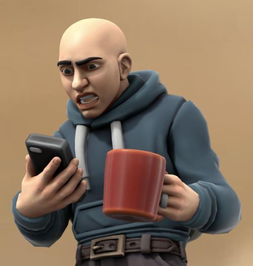 Though this 3D model@generator doesn’t handle Asian people very well I made one more mini figure of myself doomscrolling on my iPhone while drinking my coffee