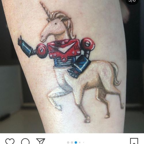 It’s always a tremendous honor when someone decides to tattoo your art into their body. This “Robocorn” comes from the end of Crankenstein, written by the always lovely, @samanthabergerauthor