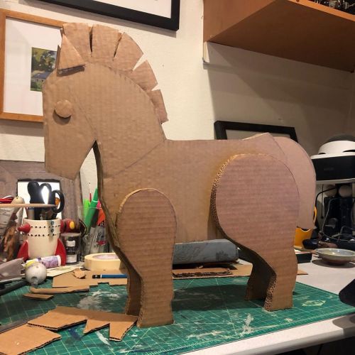 My youngest son and I built this Trojan horse out of cardboard for his school art assignment. It will be filled with candy hearts for Valentine’s Day