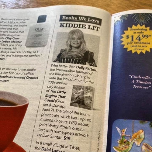 My pal, Dolly Parton and I, in this morning’s Parade Magazine for “The Little Engine That Could”