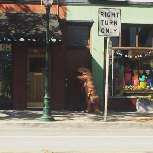 Guy in a T-Rex outfit. Apparently people can’t contain their excitement for the release of #DadandtheDinosaur