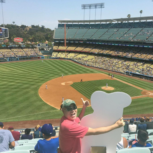 I took #CardboardSchu to a Dodgers game. They lost to the Pirates 11-3 (at Dodger Stadium)