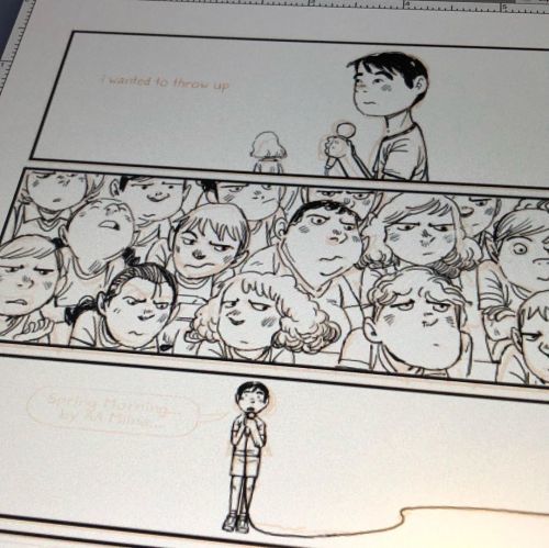Every day, the first assignment on my agenda is to ink two pages of my memoir, but it feels like it’s taken longer and longer. This spread took me about 4-4.5 hours and I can’t tell if that’s fast or slow anymore