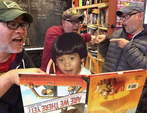 The Dans tested out our new version of #AreWeThereYet on Young Dan (he is after all a kid) which REQUIRES the reader to turn the book upside down. We think it’s a success.