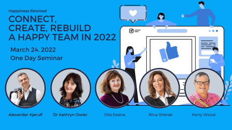 Olia Essina has invited a great group of New Zealand and international experts in team happiness to share their research, experience, and tools to change the work place happiness level.