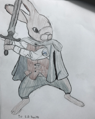To enter, simply share your child’s Green Ember art (publicly) on Instagram or Facebook. Use the hashtag #GreenEmberKidArt (along with #RabbitsWithSwords and #TheGreenEmber if you would) and tag Sam’s author account in either Facebook or Instagram (both for more entires). Please indicate the child’s age. Use of child’s first name or picture is optional, and up to parents’ judgement. Parents are entering for kids. Kids may not enter on their own. Good luck!