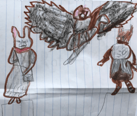 This will be the piece judged (by our secret, unscientific formulas) to be the “best.” Age will be considered, so each will be judged against expectations appropriate for the artist’s age. Come all ye diligent artists!