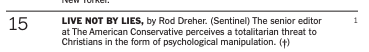 UPDATE.2: Hey everybody, just got the news that Live Not By Lies made the New York Times bestseller list this week: